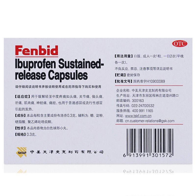 • 商品名:布洛芬缓释胶囊(芬必得)